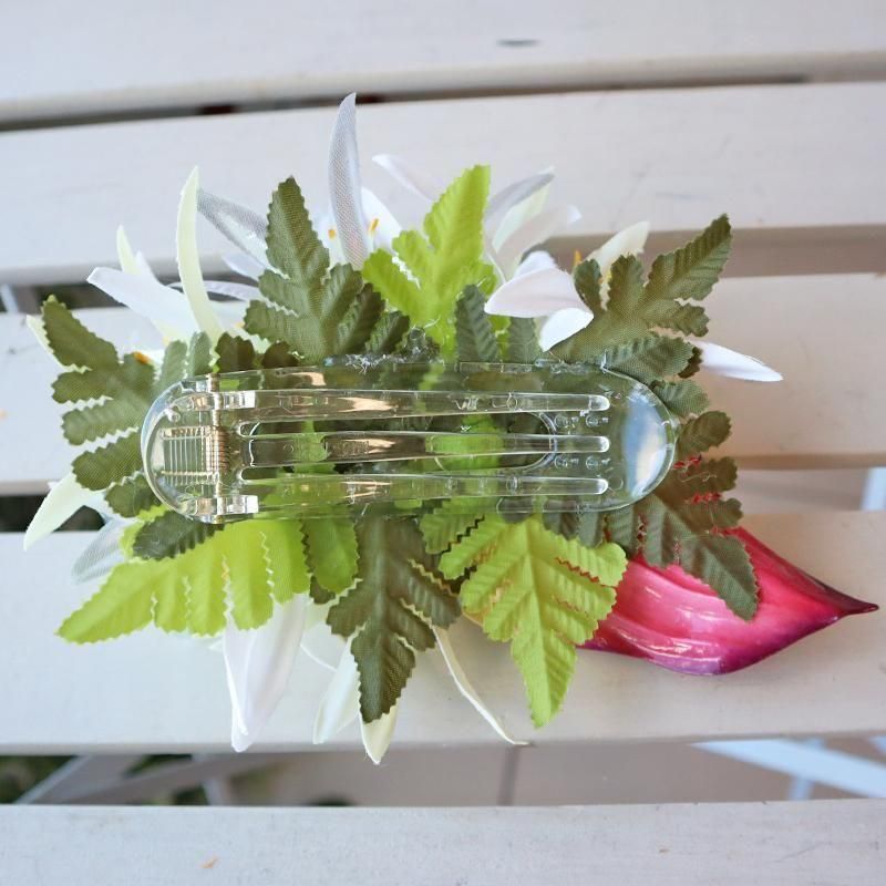 Pink Lei ヘアクリップ ホワイト&シルバー・スパイダーリリー&アンスリウム【1点もの】【メール便定形外OK】