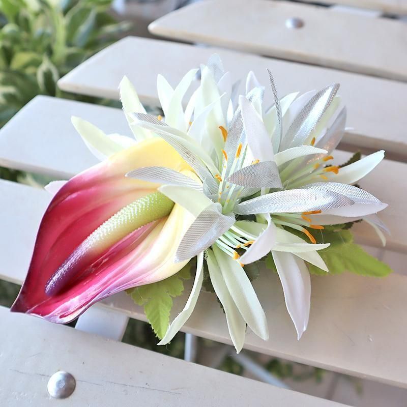 TOP > ヘアアクセサリー > Pink Lei ヘアクリップ ホワイト&シルバー・スパイダーリリー&アンスリウム【1点もの】【メール便定形外OK】
