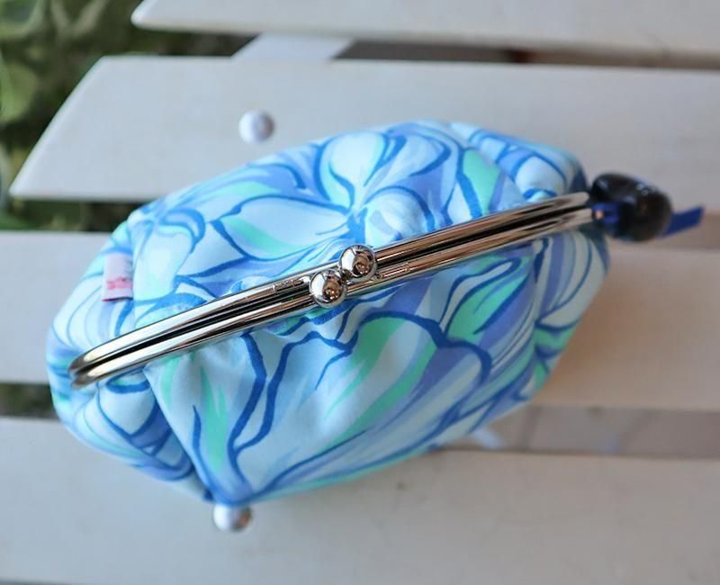 TOP > がま口ポーチ > コロコロポーチ > Pink Lei オリジナル【1点もの】 コロコロポーチ ライトブルー・プルメリア&ハイビスカス柄
