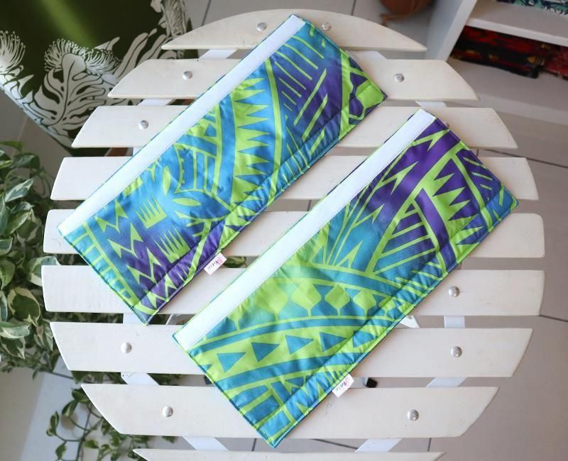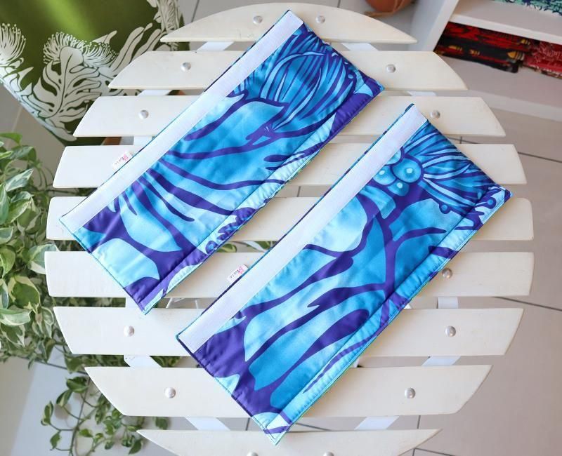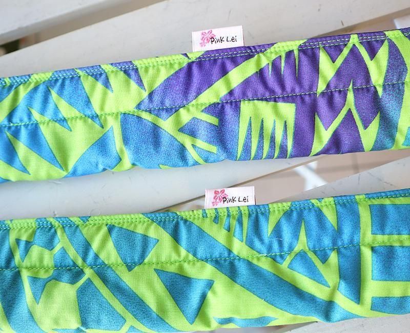 TOP > シートベルトカバー > 〜Pink Lei オリジナル〜 シートベルトカバー ライム&ブルーグラデーション・トライバル柄【1点もの】