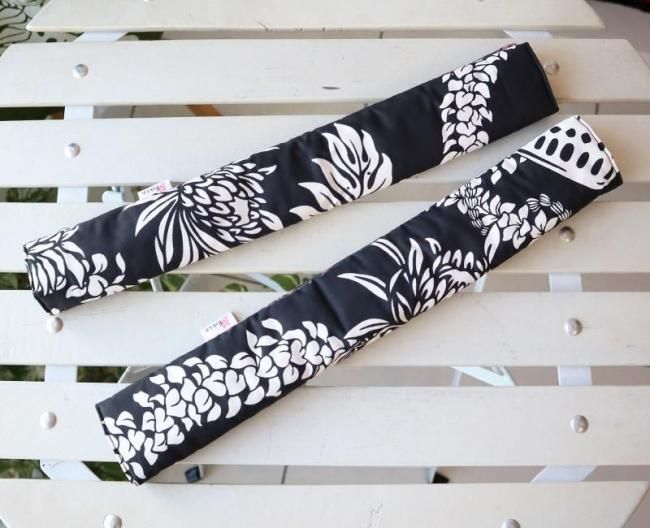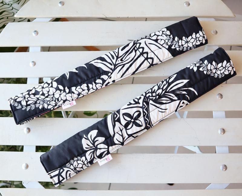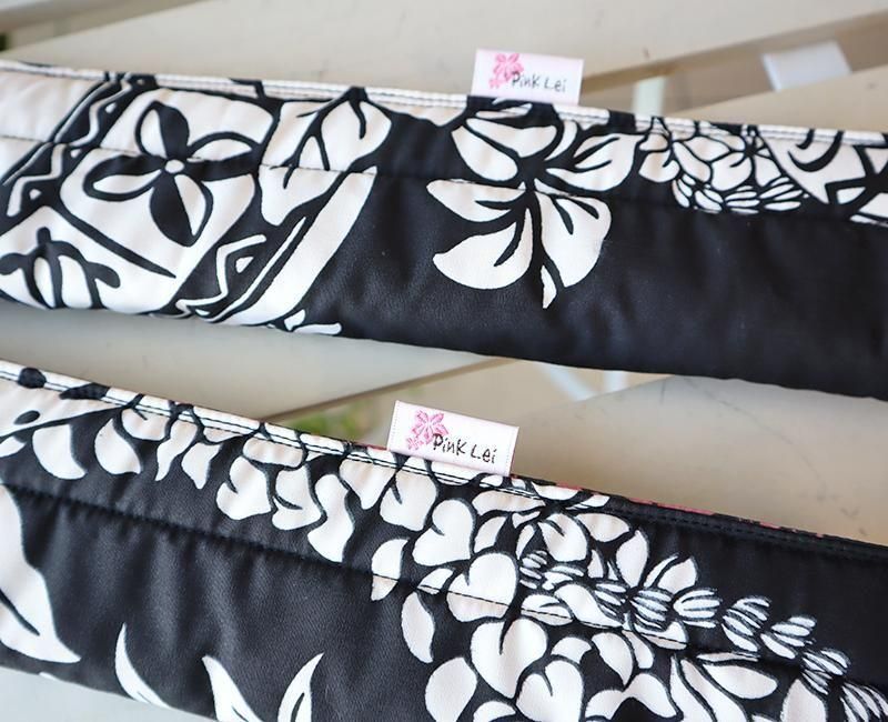 〜Pink Lei オリジナル〜 シートベルトカバー ブラック&ホワイト・楽器&レイ柄【1点もの】