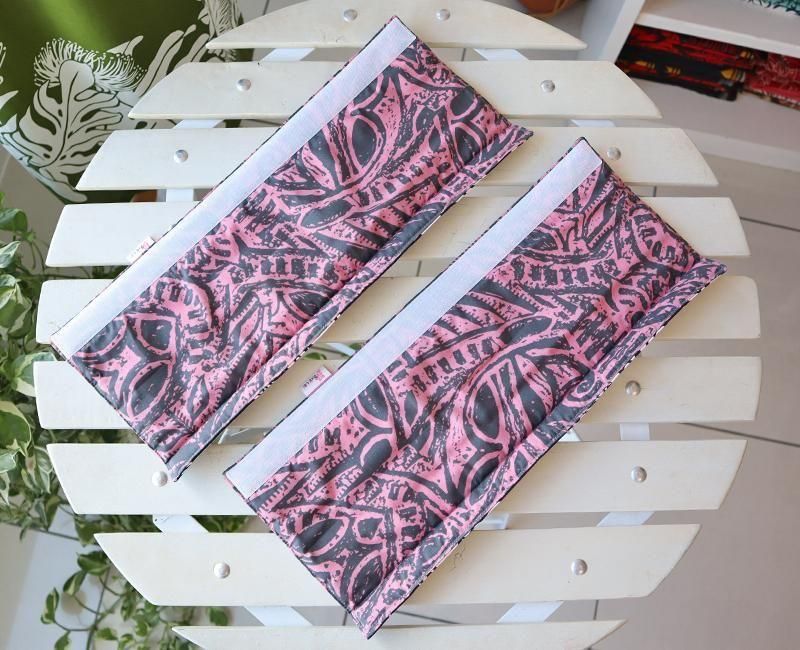 嬉しい2点セット(運転席用+助手席用)で、ハワイアンファブリック特有の華やかな柄がインテリアとしてもアクセントになり車内を明るくしてくれます。