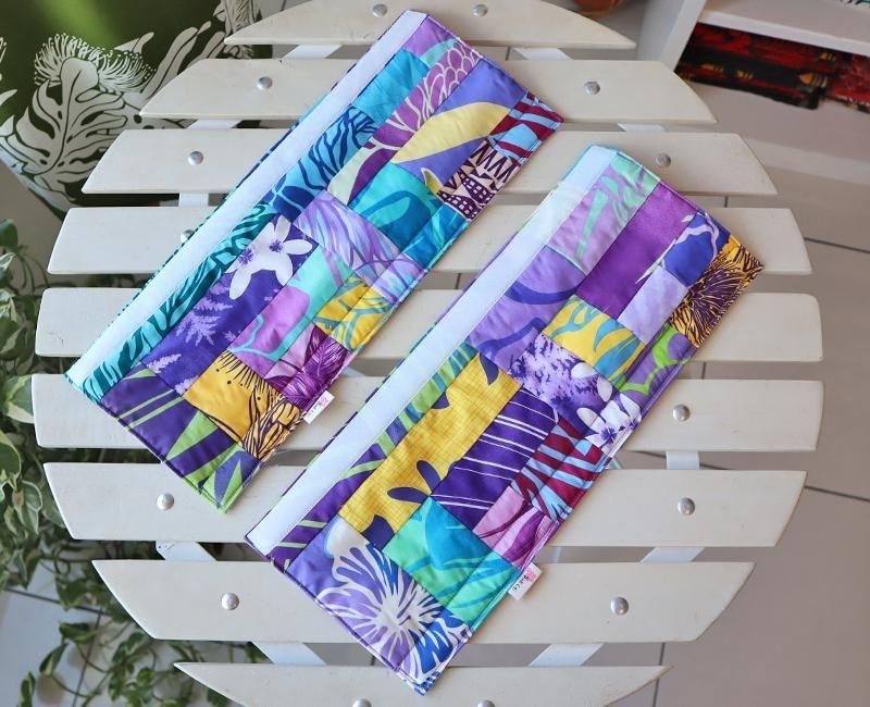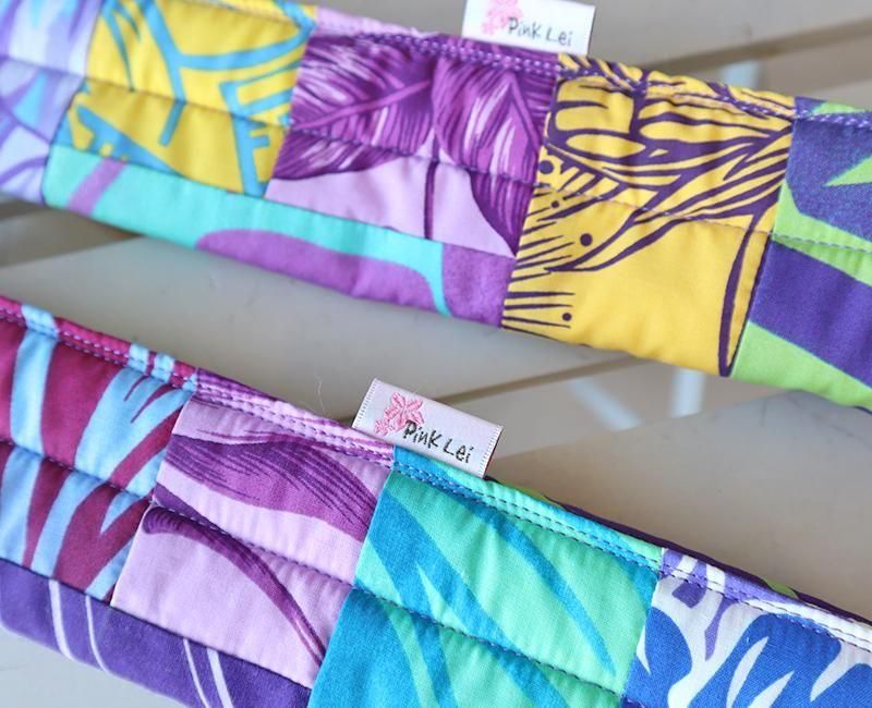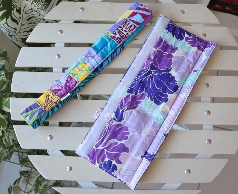 TOP > ハワイアンパッチ > 〜Pink Lei オリジナル〜 ハワイアンパッチ・シートベルトカバー パープル&イエロー&ブルー【1点もの】
