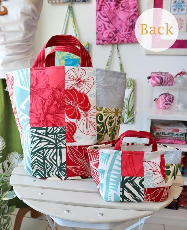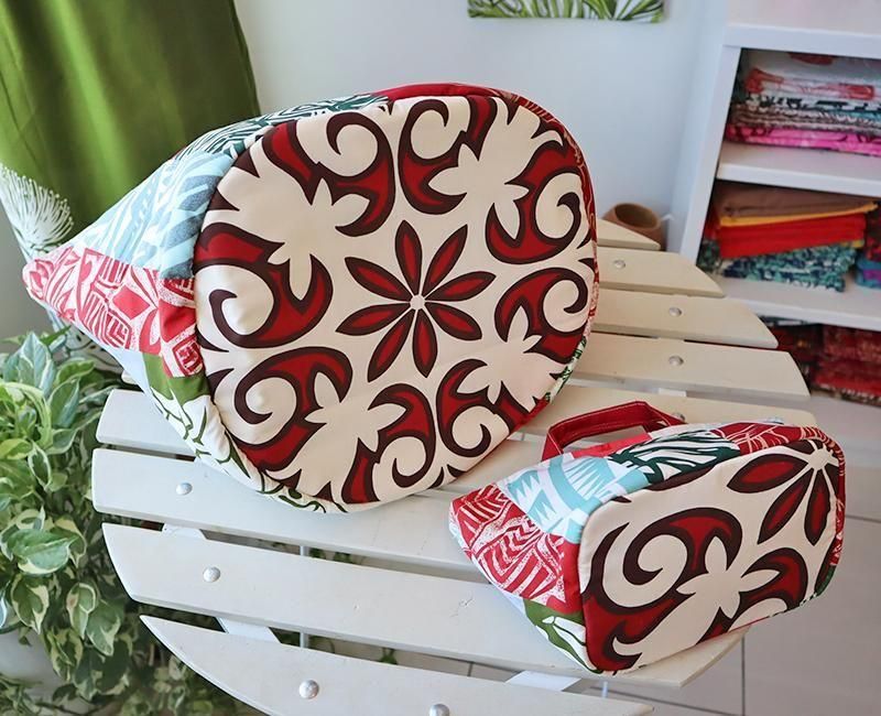 TOP > ハワイアンパッチ > バケツ型バッグ(L) > 〜新商品〜 ハワイアンパッチ・バケツバッグ(L)とミニトート(S)のセット レッド&アイスブルー&グリーン【1点もの】