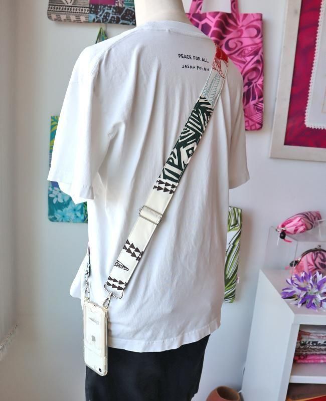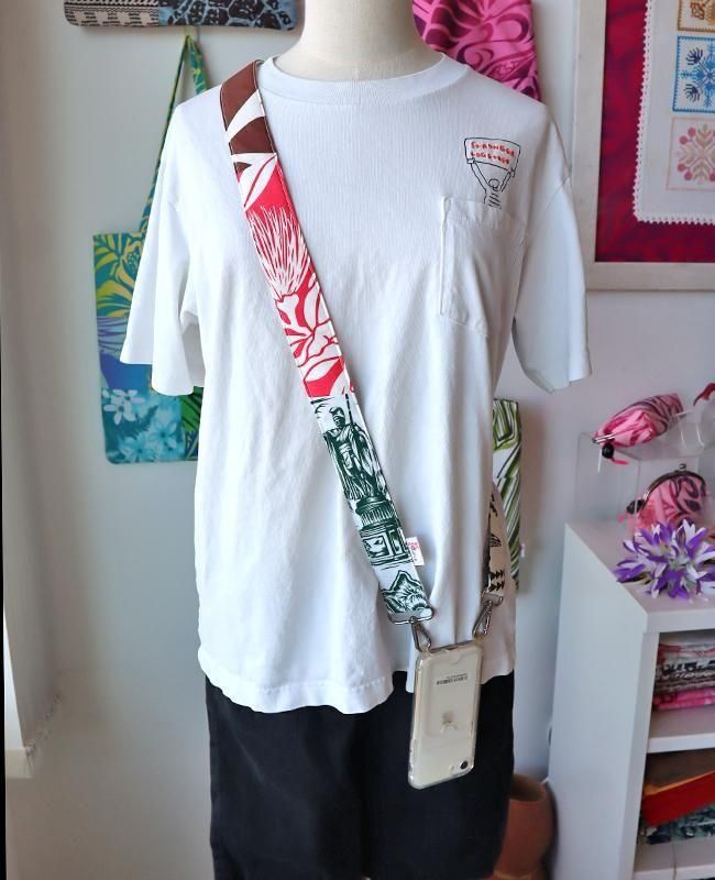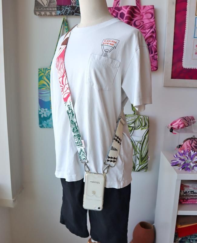 TOP > ショルダーストラップ > 新商品 〜Pink Lei オリジナル〜 ハワイアンショルダーストラップ(ワイド) ホワイト&レッド&グリーン【1点もの】