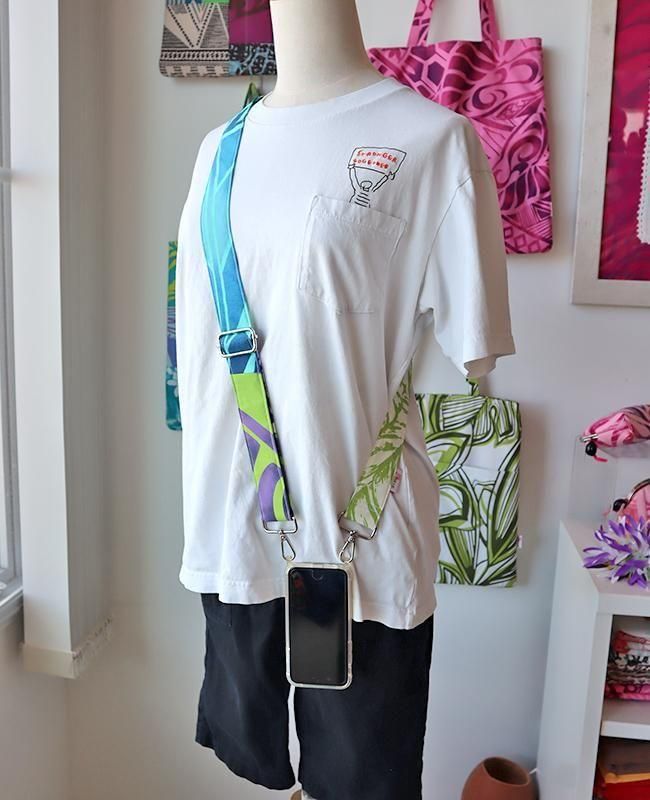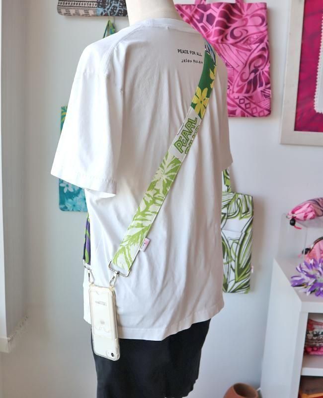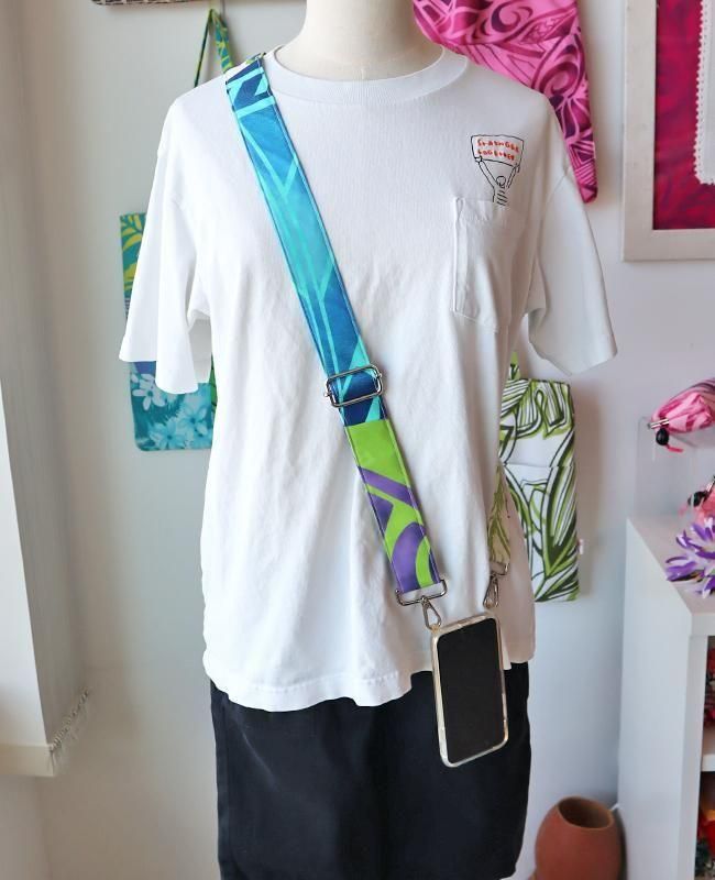 いま人気のショルダーストラップを華やかなハワイアンファブリックで仕上げました!