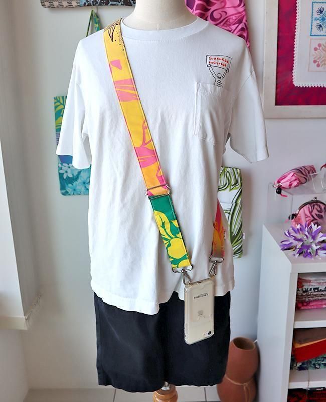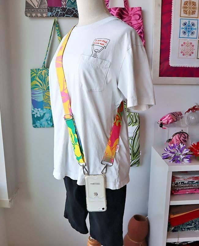 いま人気のショルダーストラップを華やかなハワイアンファブリックで仕上げました!