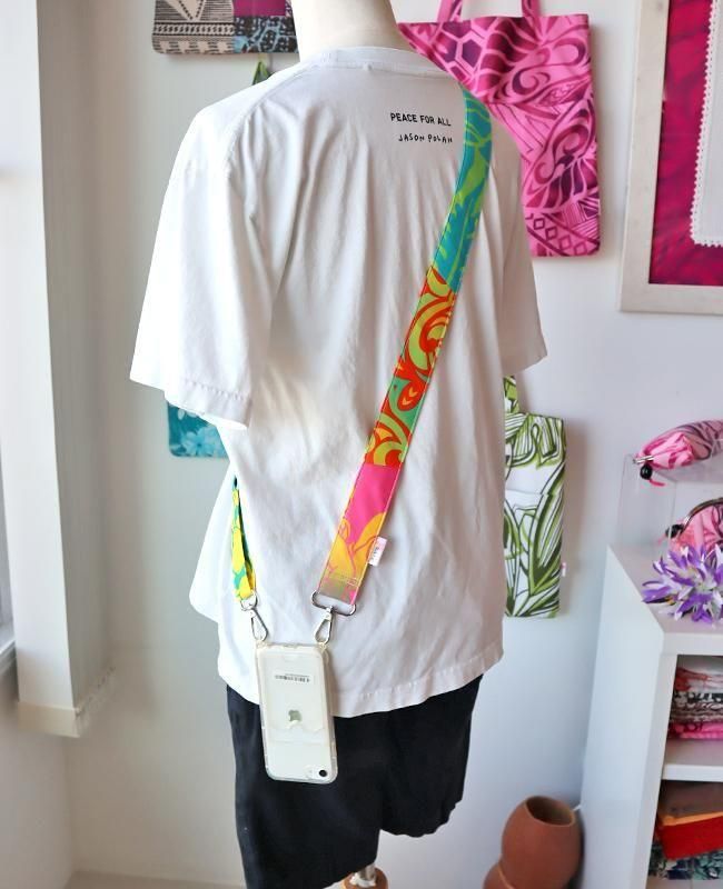 TOP > ショルダーストラップ > 新商品 〜Pink Lei オリジナル〜 ハワイアンショルダーストラップ(ワイド) ネオンマルチ【1点もの】