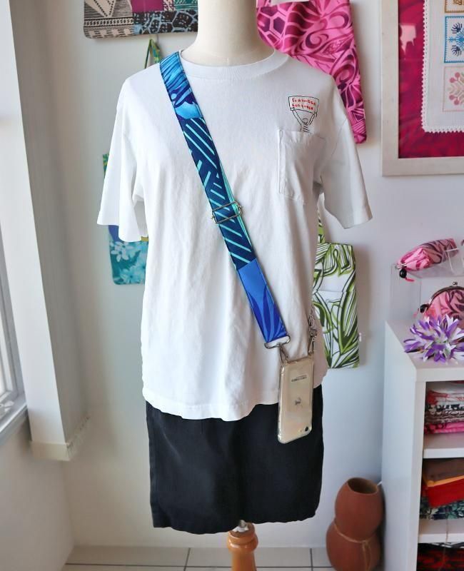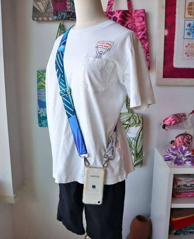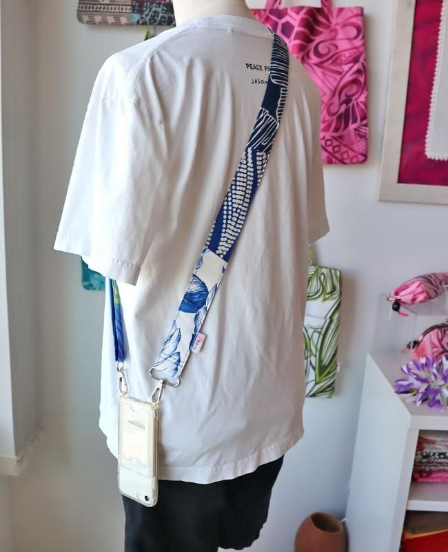 TOP > ショルダーストラップ > 新商品 〜Pink Lei オリジナル〜 ハワイアンショルダーストラップ(ワイド) ブルー&ホワイト【1点もの】