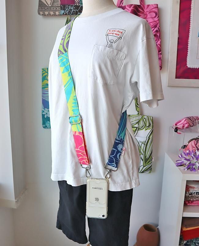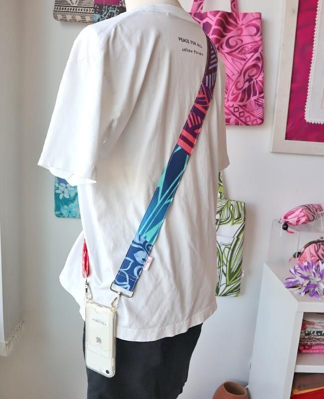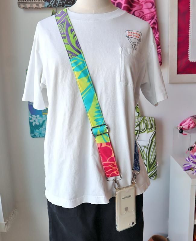 TOP > ショルダーストラップ > 新商品 〜Pink Lei オリジナル〜 ハワイアンショルダーストラップ(ワイド) ネオンマルチ #2【1点もの】