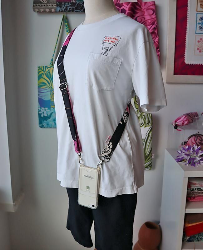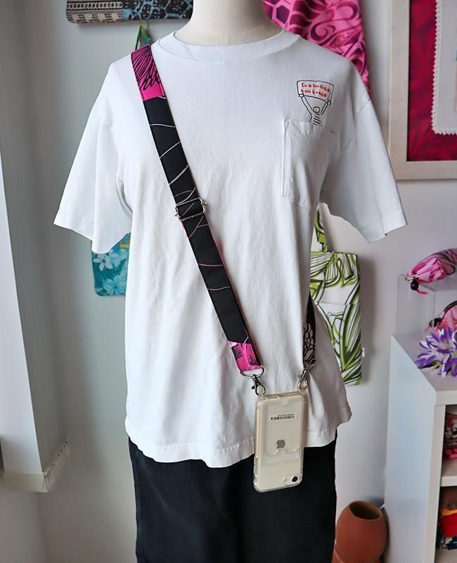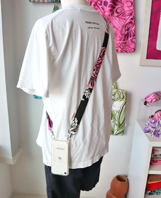 TOP > ショルダーストラップ > 新商品 〜Pink Lei オリジナル〜 ハワイアンショルダーストラップ ブラック&ホットピンク【1点もの】
