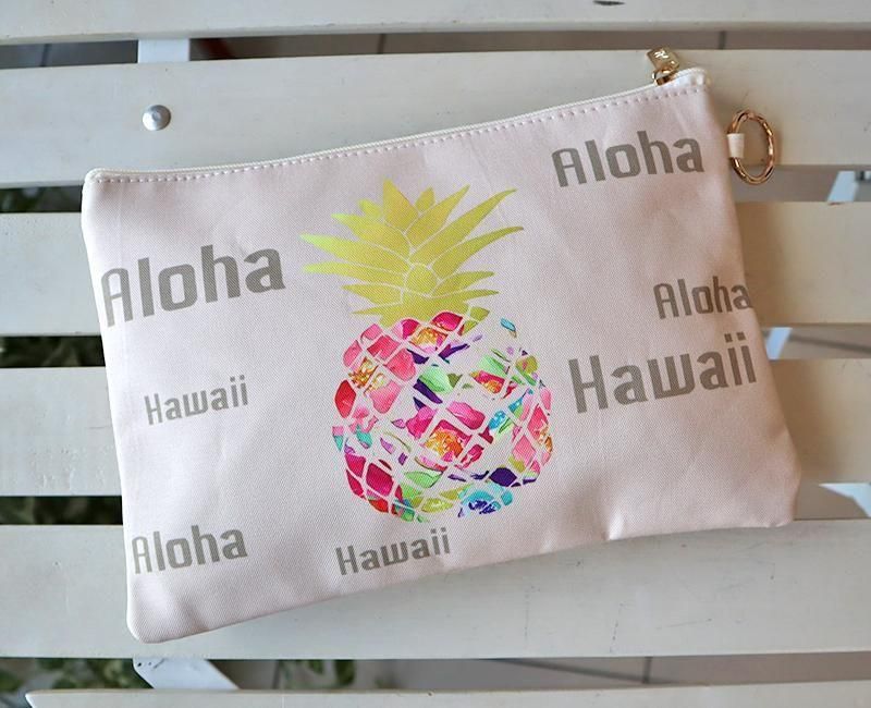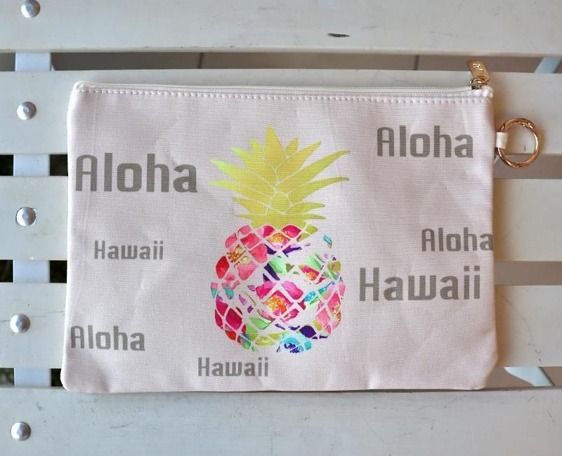 TOP > HAWAIIポーチ > Pink Lei インポートアイテム【1点もの】ALOHAポーチ パステルピンク・パイナップル柄