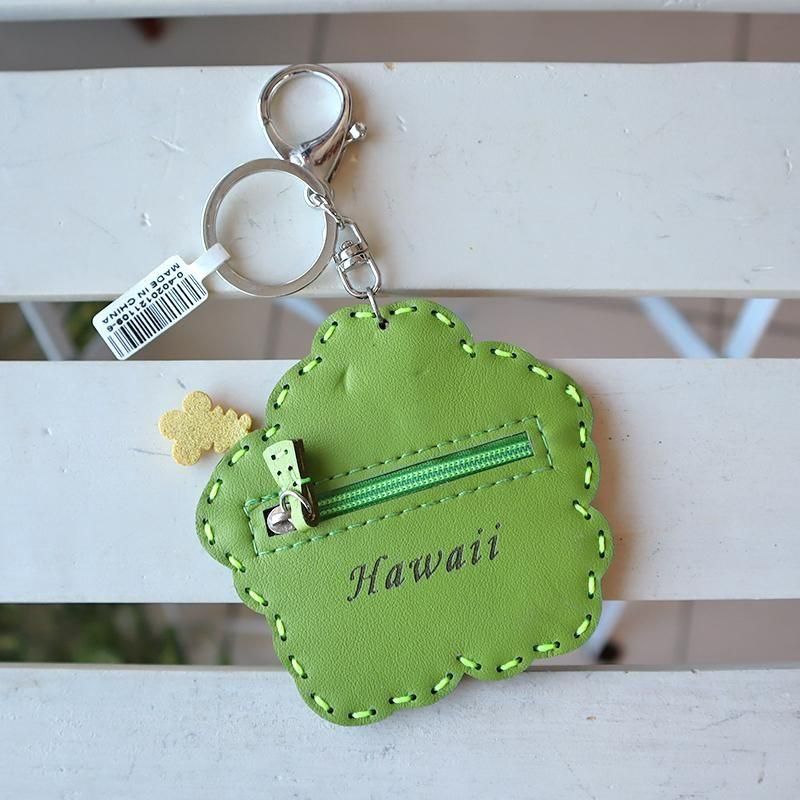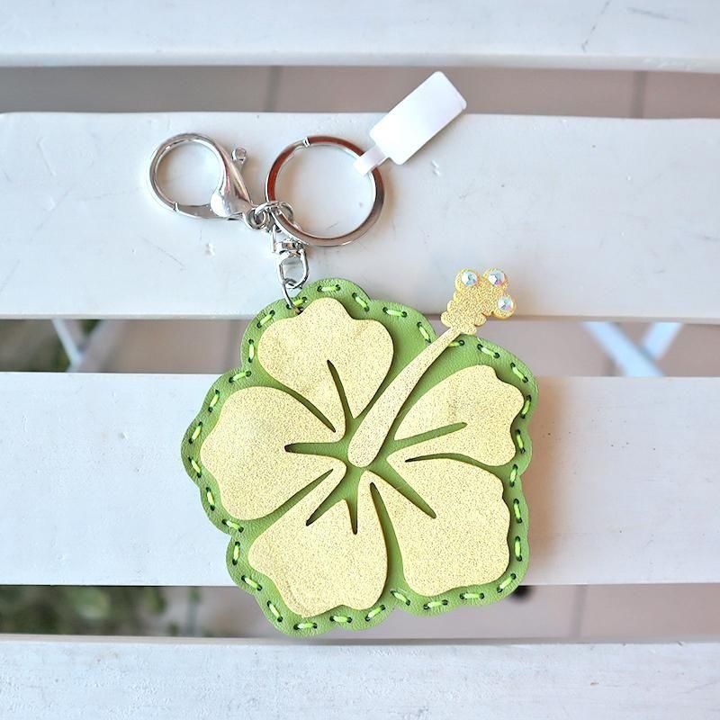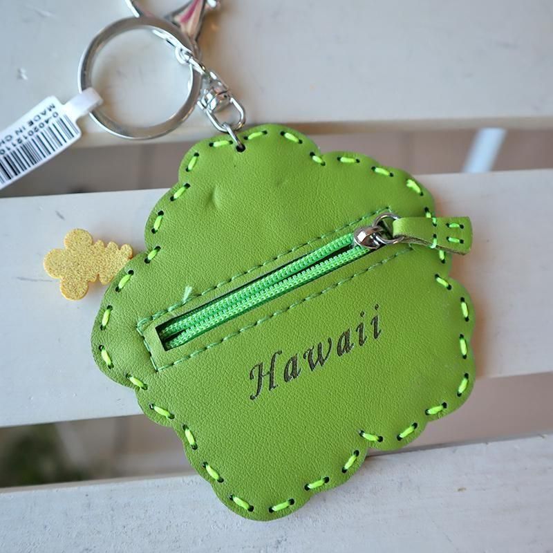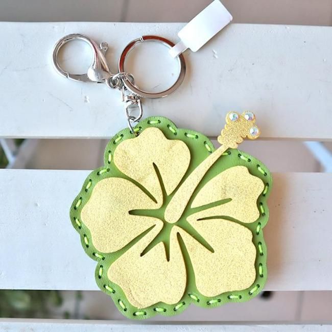 TOP > キーホルダー > Pink Lei インポートアイテム【1点もの】コインケースにもなるキーホルダー イエロー&グリーン・ハイビスカス柄