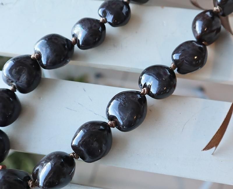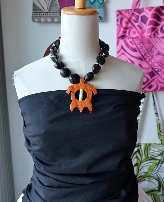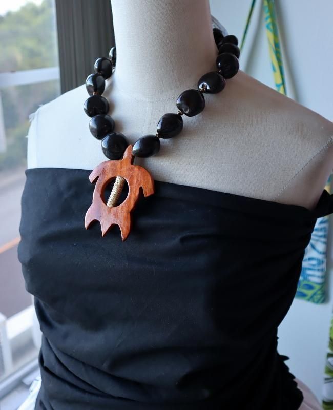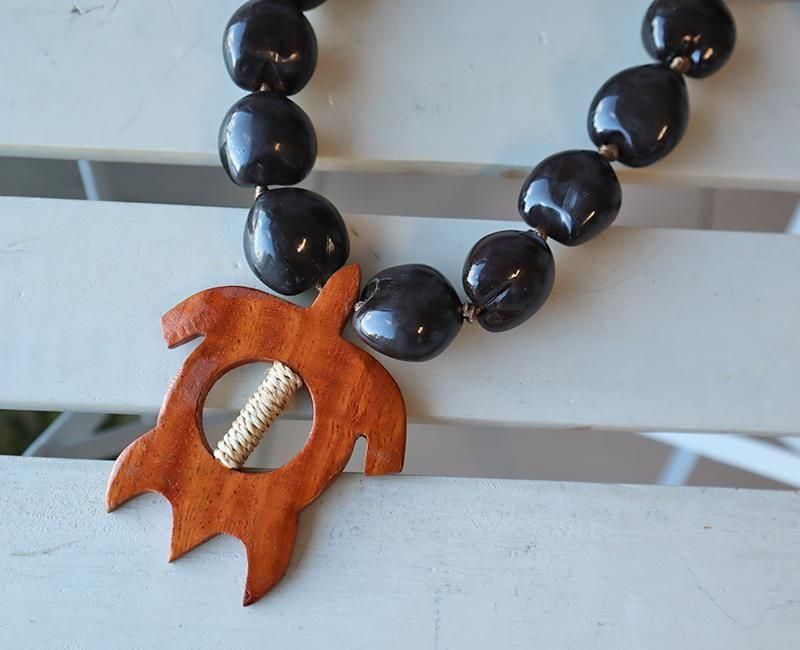 TOP > ククイネックレス > 【1点もの】Pink Lei ククイ・ショートネックレス ブラック/ホヌ(ウミガメ)