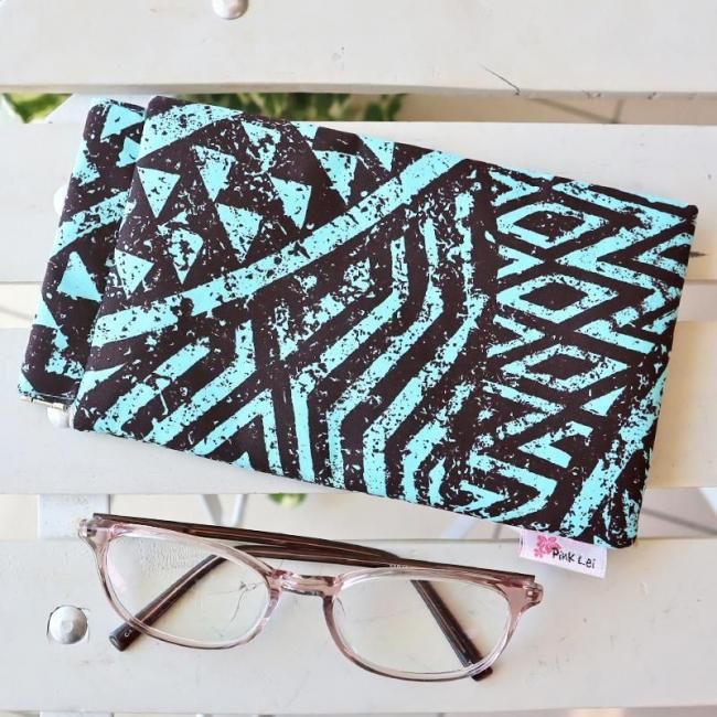 TOP > メガネケース > Pink Lei オリジナル【1点もの】メガネケース ミントブルー&ブラウン・古典柄