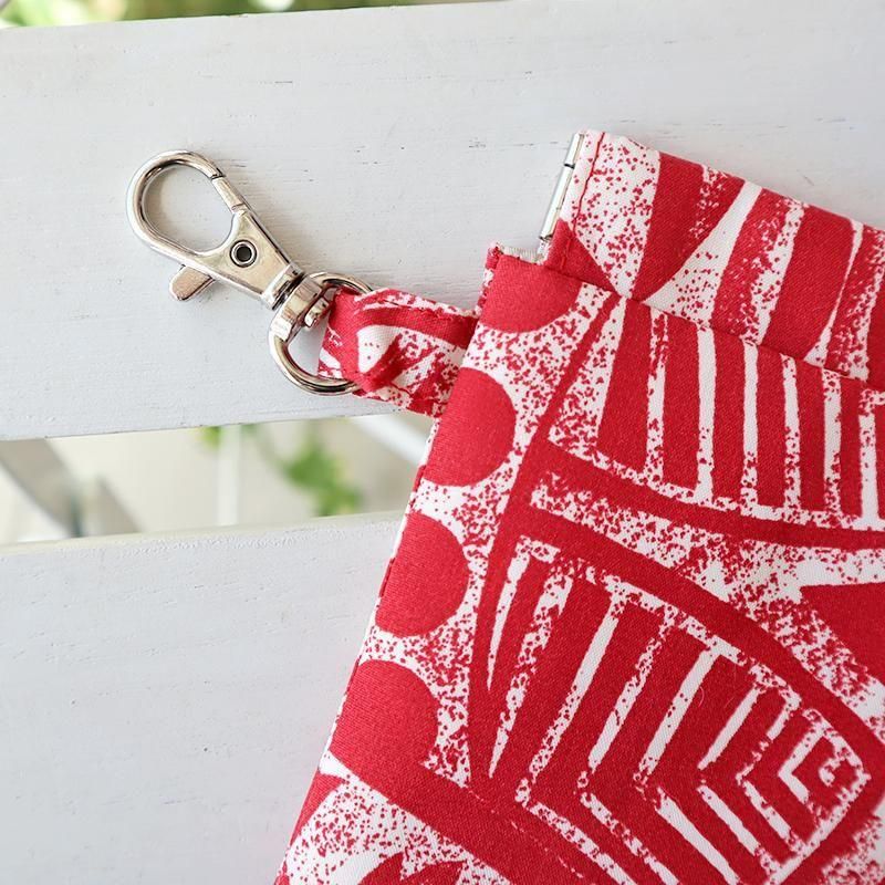 Pink Lei オリジナル【1点もの】キャリーポーチ レッド・古典柄