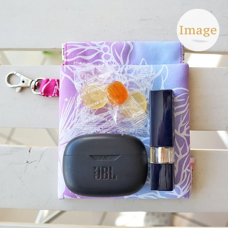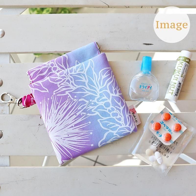 日常使いしている細々したアイテムを便利に収納できるキャリーポーチ。ハワイアンファブリックの賑やかな柄が可愛い、シンプルながら実用性のあるデザインです。