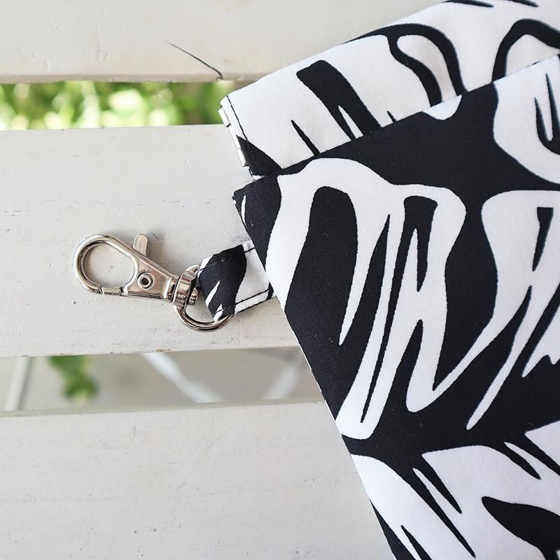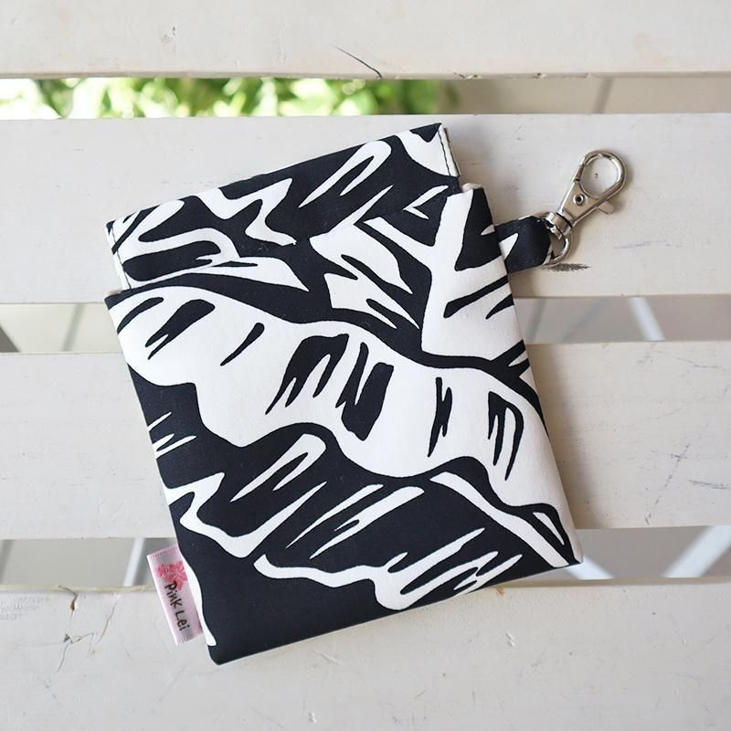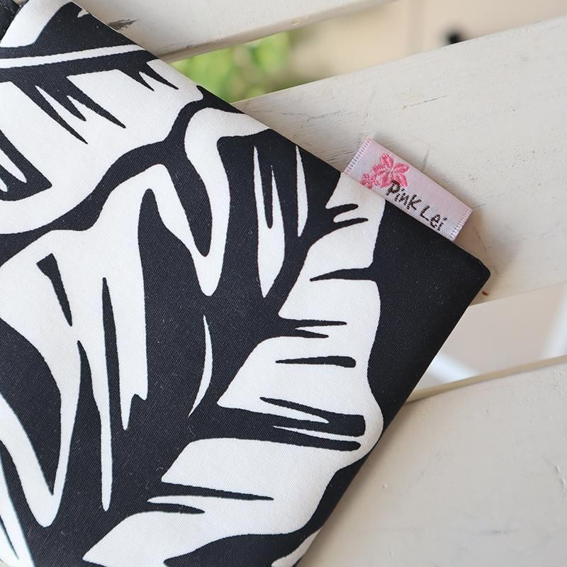 TOP > キャリーポーチ > Pink Lei オリジナル【1点もの】キャリーポーチ ブラック&ホワイト・バナナリーフ柄