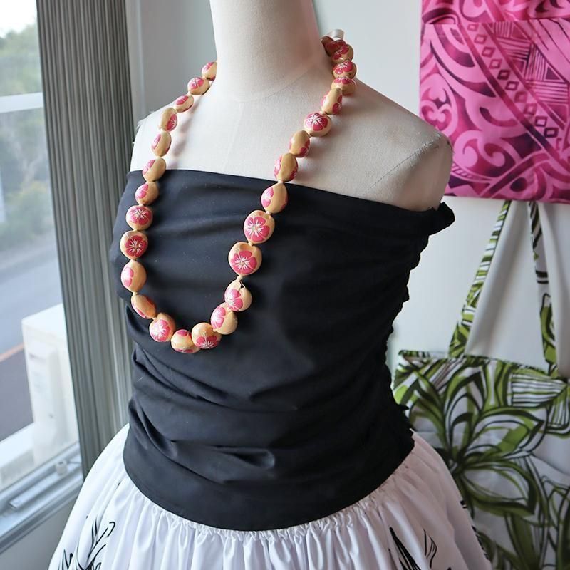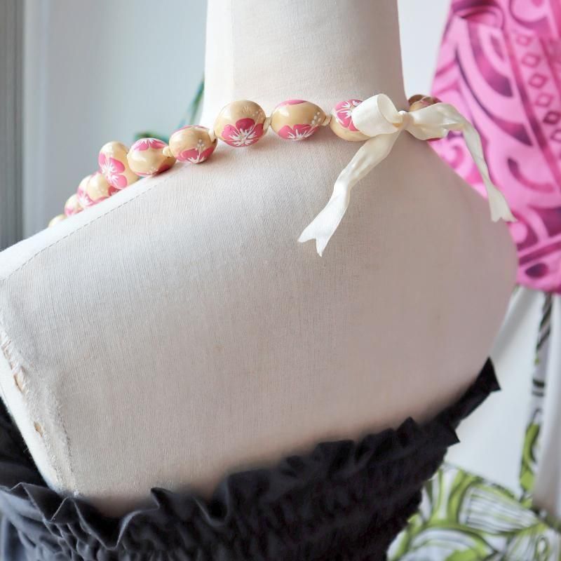 Pink Lei ククイネックレス ホワイト&ピンク/ハイビスカス柄【1点もの】