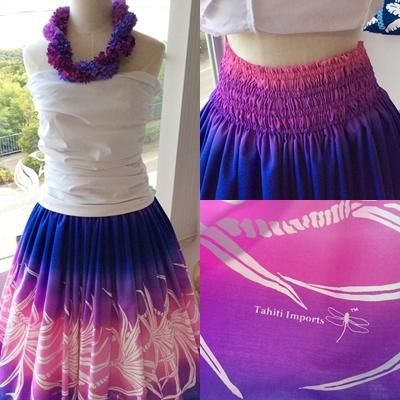 TOP > 【既成】 タヒチインポーツ シングルパウ グラデーション・ラウアエ柄 ウエストゴム4本 丈75cm 【送料無料】